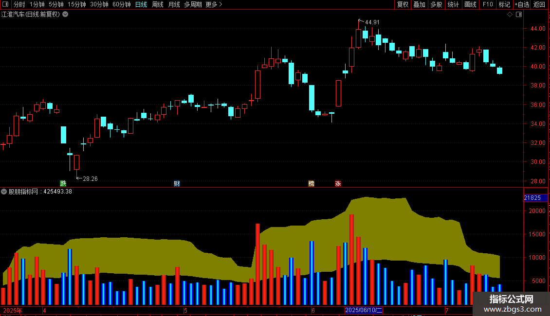 STICKLINE(CLOSE>=OPEN,0,V,1.0,0) ,COLOR1020DD;