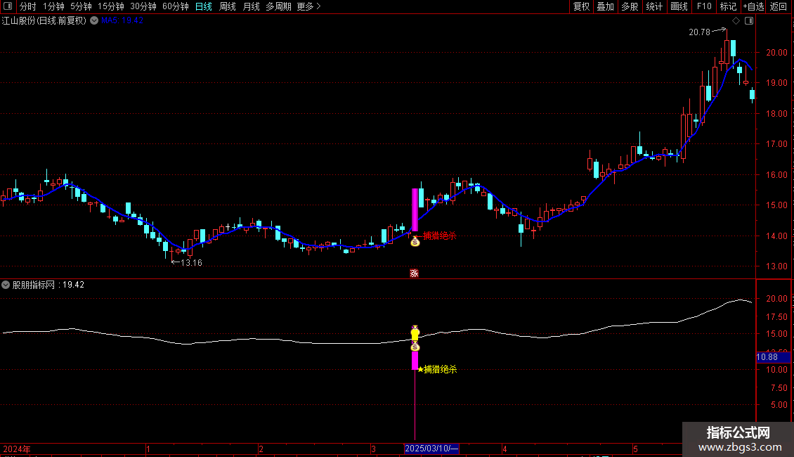 操盘线:MA(CLOSE,5)COLORBLUE LINETHICK2;