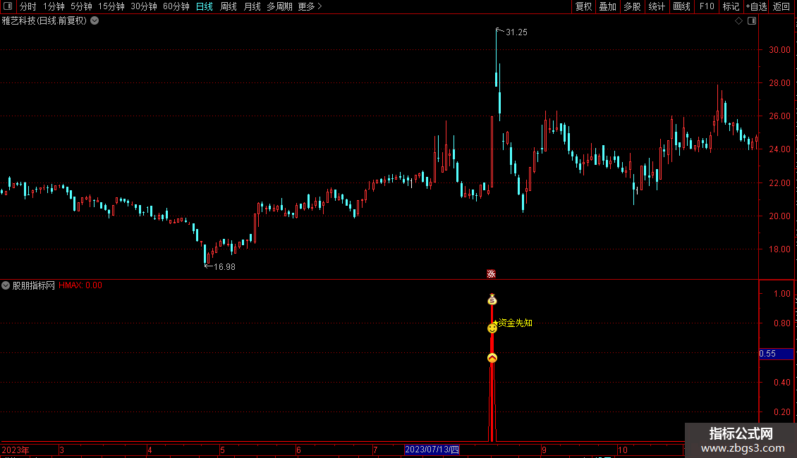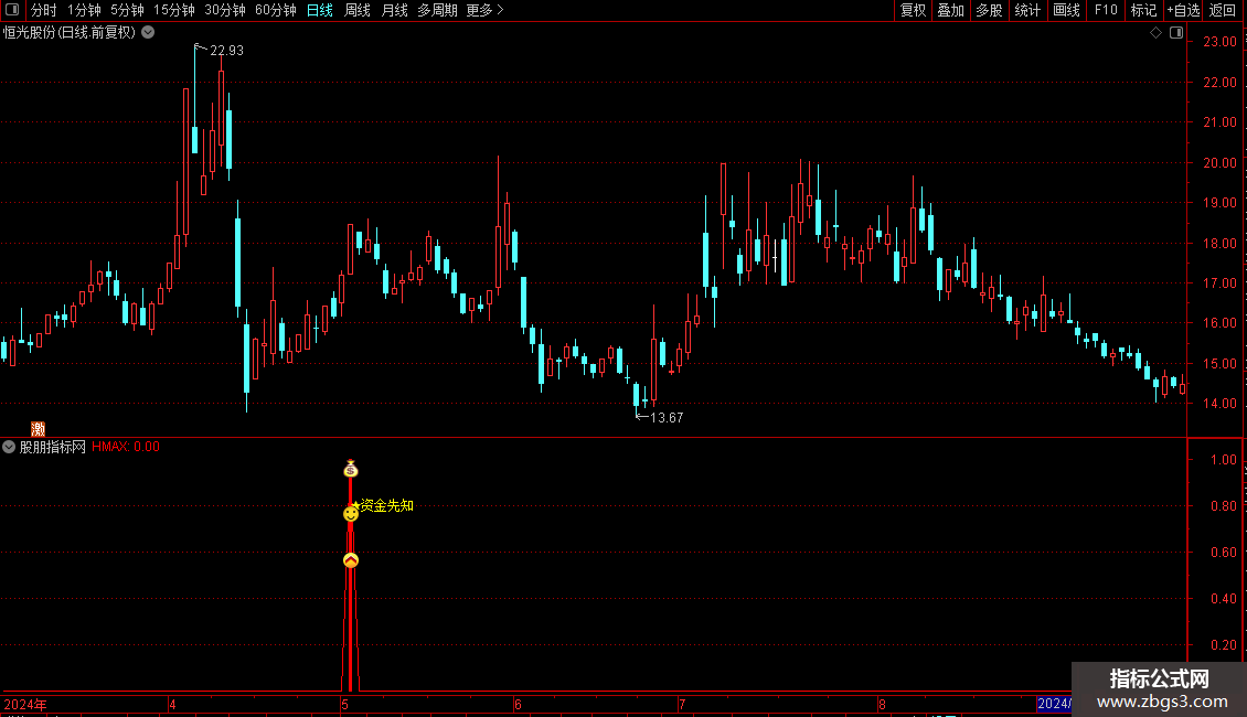 DRAWTEXT(HMAX,0.8, '★资金先知'),COLORYELLOW LINETHICK6;