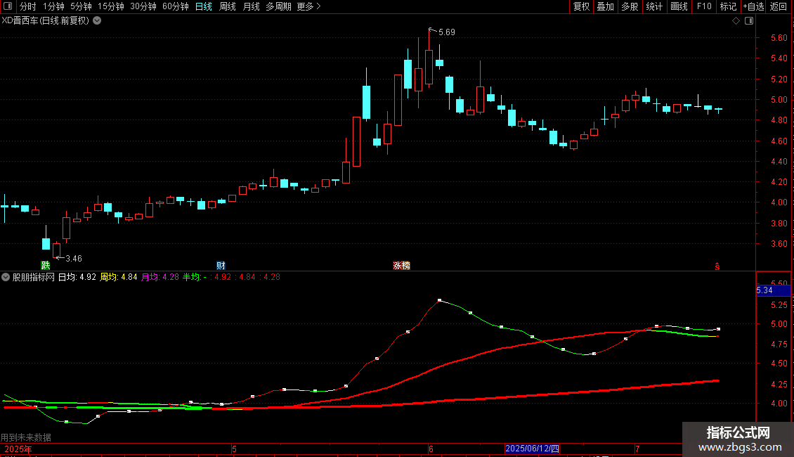IF(半均>REF(半均,1),半均,DRAWNULL),COLORRED,LINETHICK4;