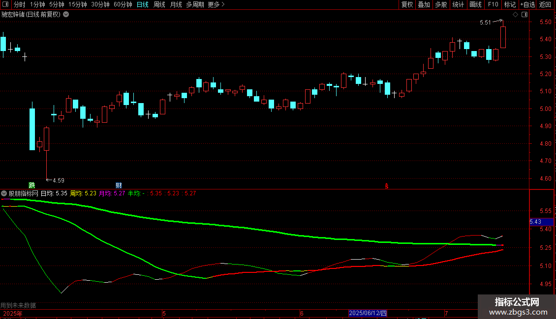 反转:=C>日均 AND 周均>月均 AND 月均>REF(月均,1);