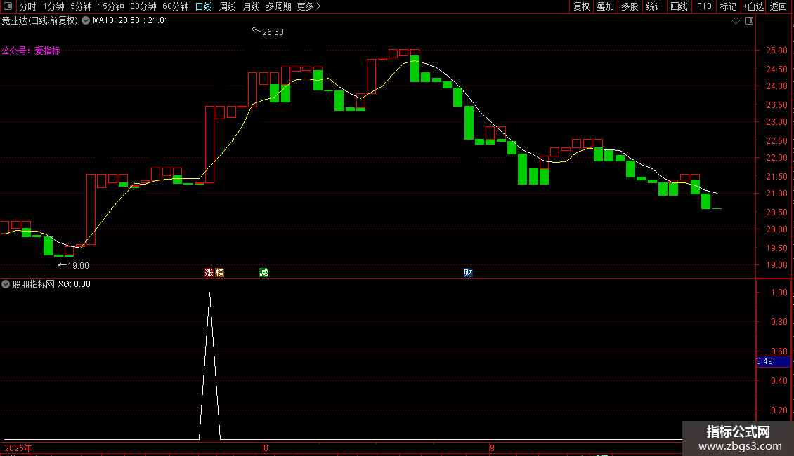 当满足条件BNGE35=0ANDC<爱指标时,在公众号和爱指标位置之间画柱状线,宽度为3,1不为0则画空心柱.,COLOR0000AA
