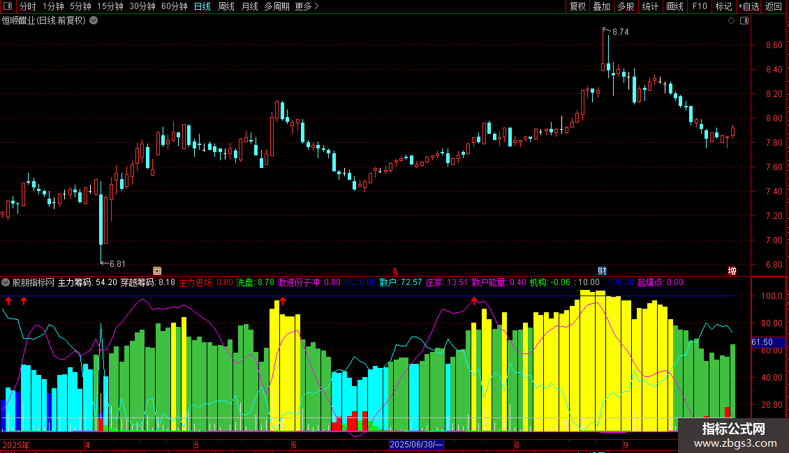 主力进场:IF(VAR5>REF(VAR5,1),VAR5,0),COLORRED,NODRAW;