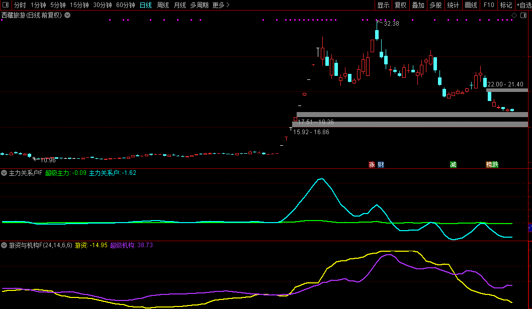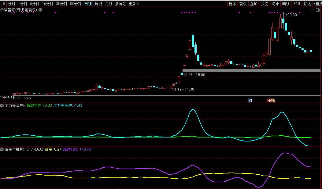 主力关系户线(青色):监测短期资金联动,灵敏度更高。