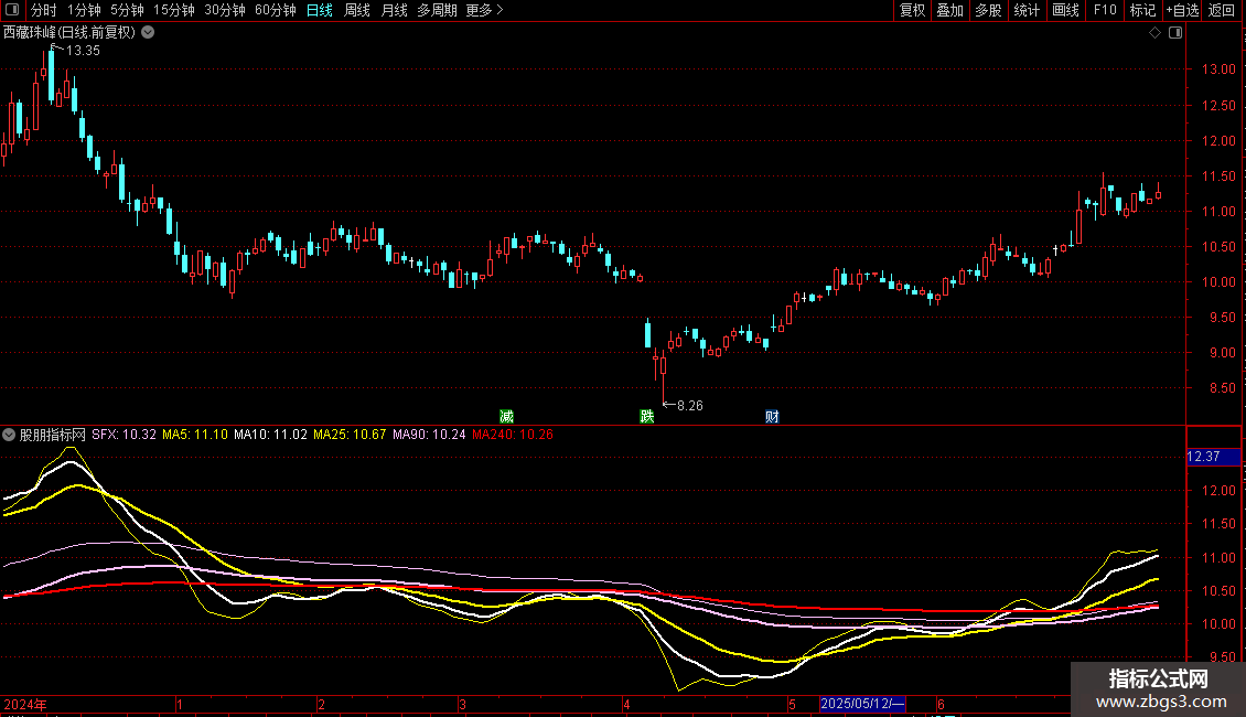 MA10:EMA(R*ZL,10)/EMA(ZL,10),COLORWHITE,LINETHICK2;