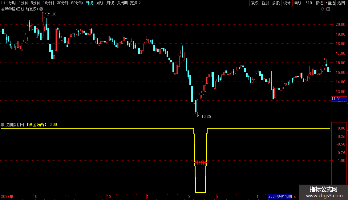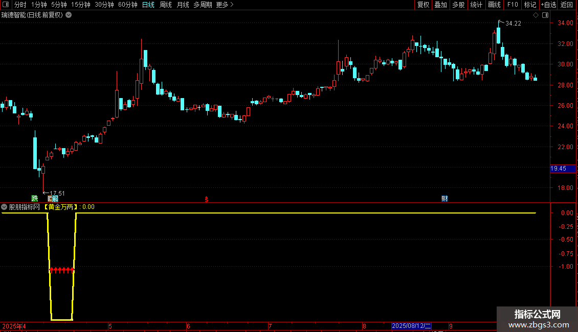 【黄金万两】:IF(RRD,-2,0),COLORYELLOW,LINETHICK3;