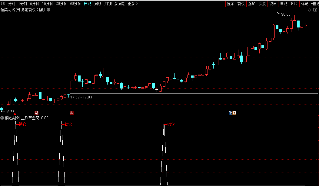 以下为锁仓信号的副图与选股公式源码(未加密),供投资者参考使用。副图信号可叠加其他技术指标协同分析。