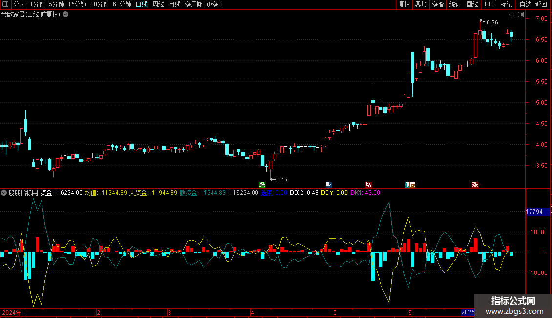 选股:CROSS(大资金,散资金) AND 月差>0,LINETHICK0;