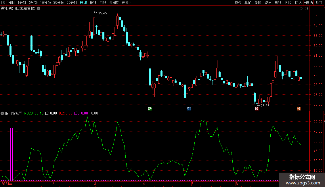 RS20:(C-LLV(L,20))/(HHV(H,20)-LLV(L,20))*100,COLORGREEN;
