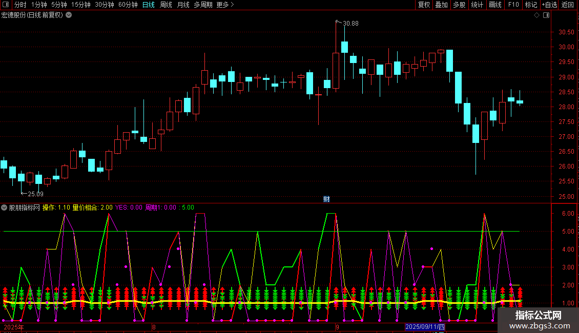 IF(YES>=REF(YES,1),量价相合,DRAWNULL),COLORGREEN,LINETHICK2;