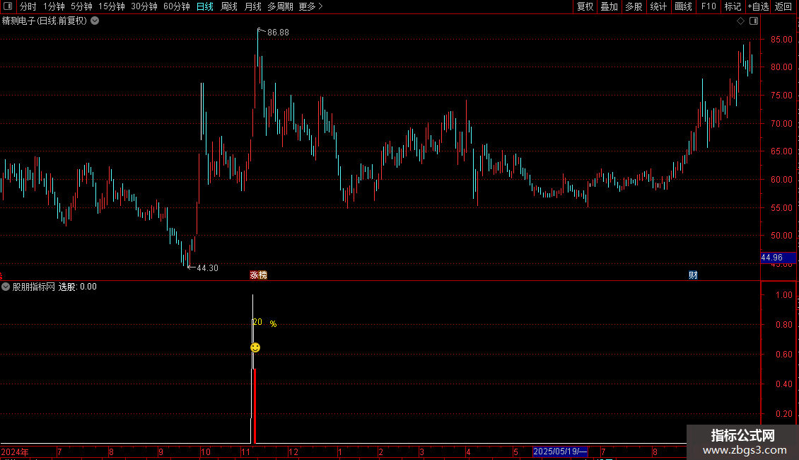 成绩:=(最高/买入-1)*100,COLORRED,NODRAW;