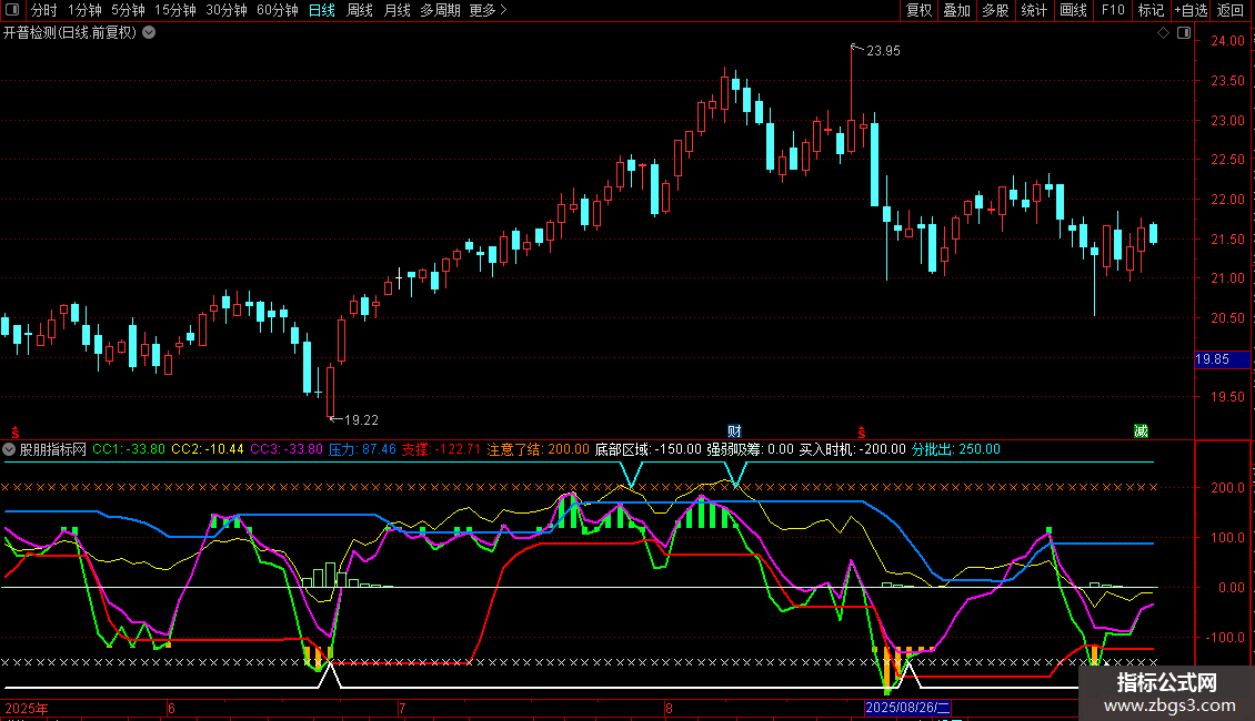 分批出:IF(CROSS(80,MM),200,250),LINETHICK2,COLORCYAN;