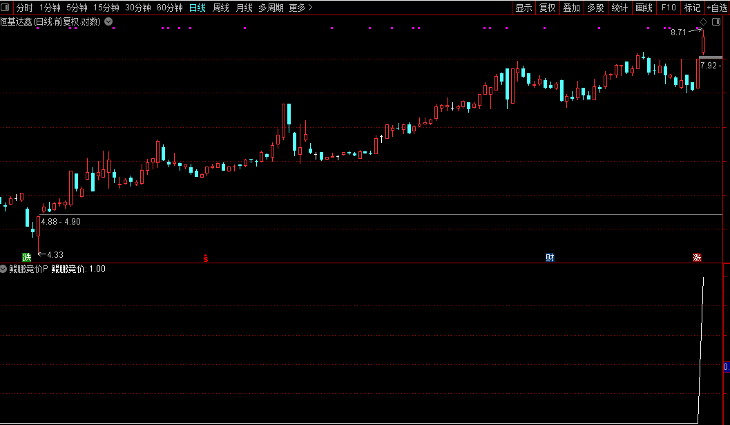 9:25-9:30打开通达信排序界面(快捷键.401),调用“鲲鹏竞价”指标,按值降序排列,优先数值=1且非一字涨停个股,结合大盘情绪开盘介入。