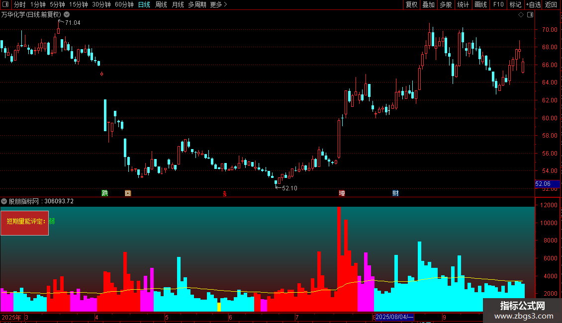 DRAWTEXT_FIX(CURRBARSCOUNT=1 AND COUNT(V>EMA(V,60),7)< 3 ,0,0.1,0,' 短期量能评定:'),COLORYELLOW;