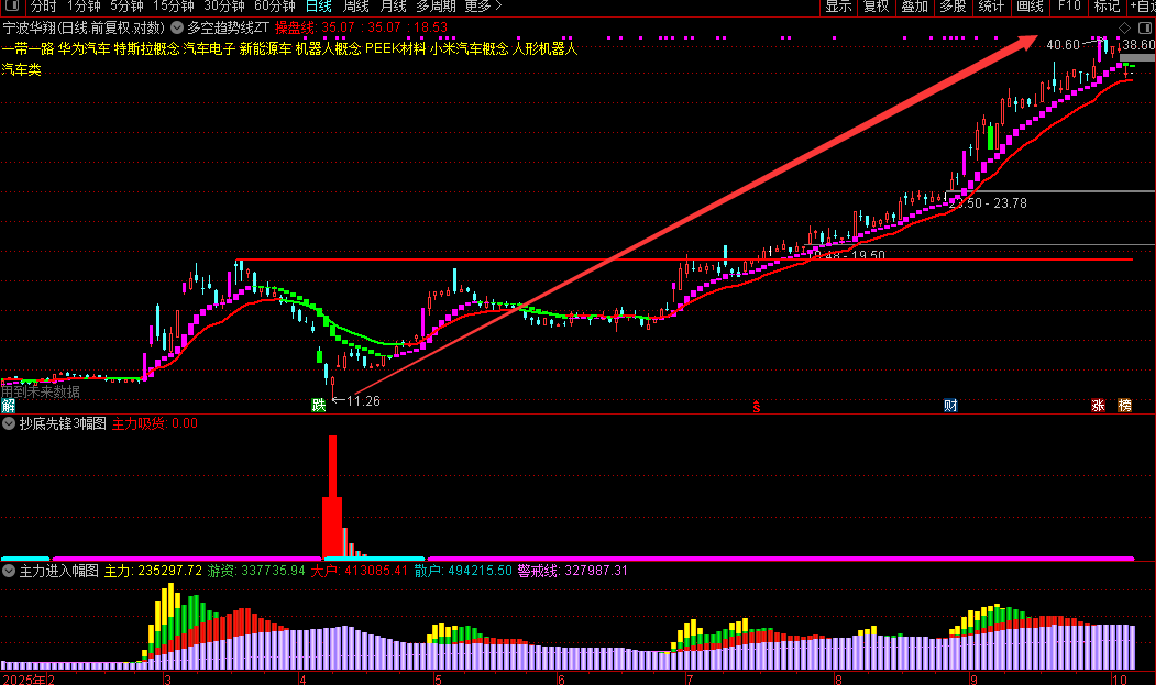 主图含有画线函数DRAWLINE,属于未来函数,介意的请谨慎下载。