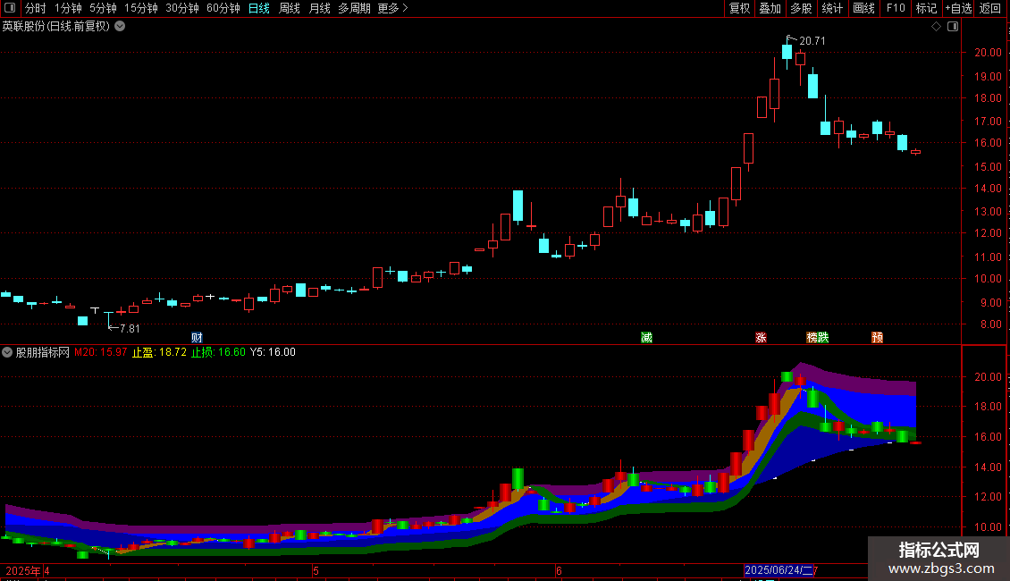 DRAWBAND(M20,RGB(0,0,155),止损,RGB(0,0,155));