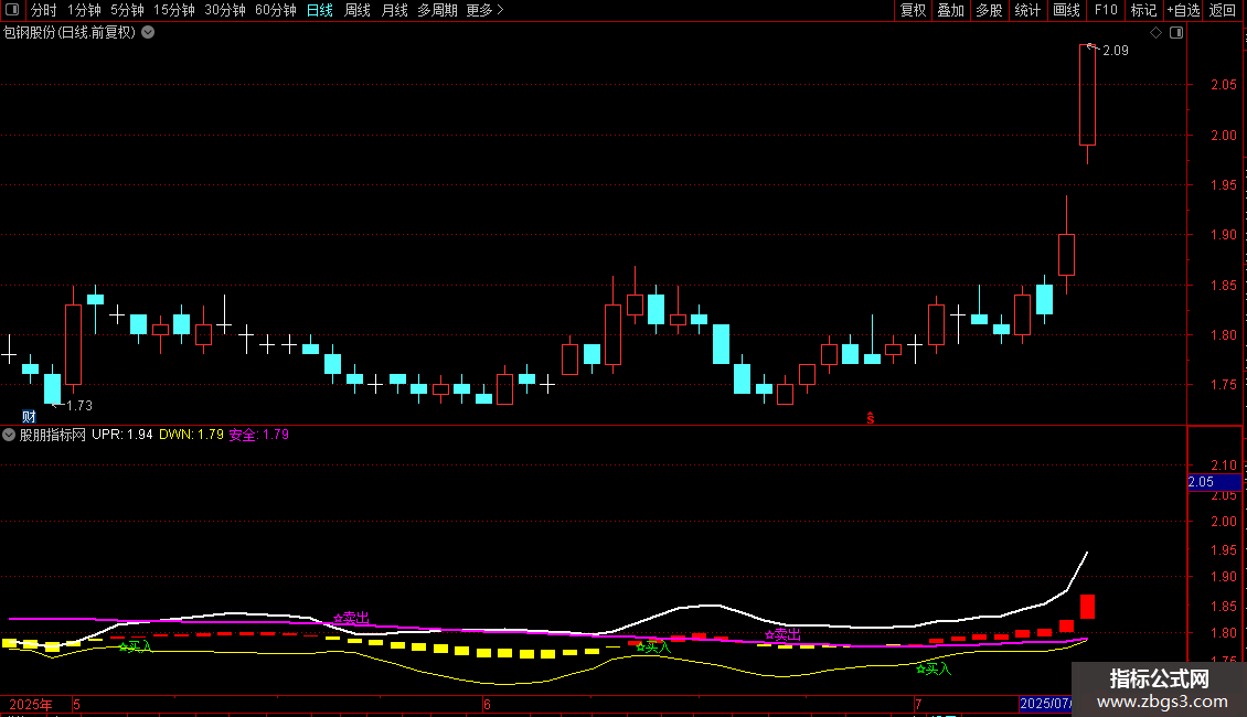 OPEN>REF(CLOSE,1),1,0),LOW*0.98,'买进') ,COLORYELLOW;