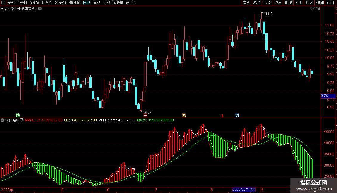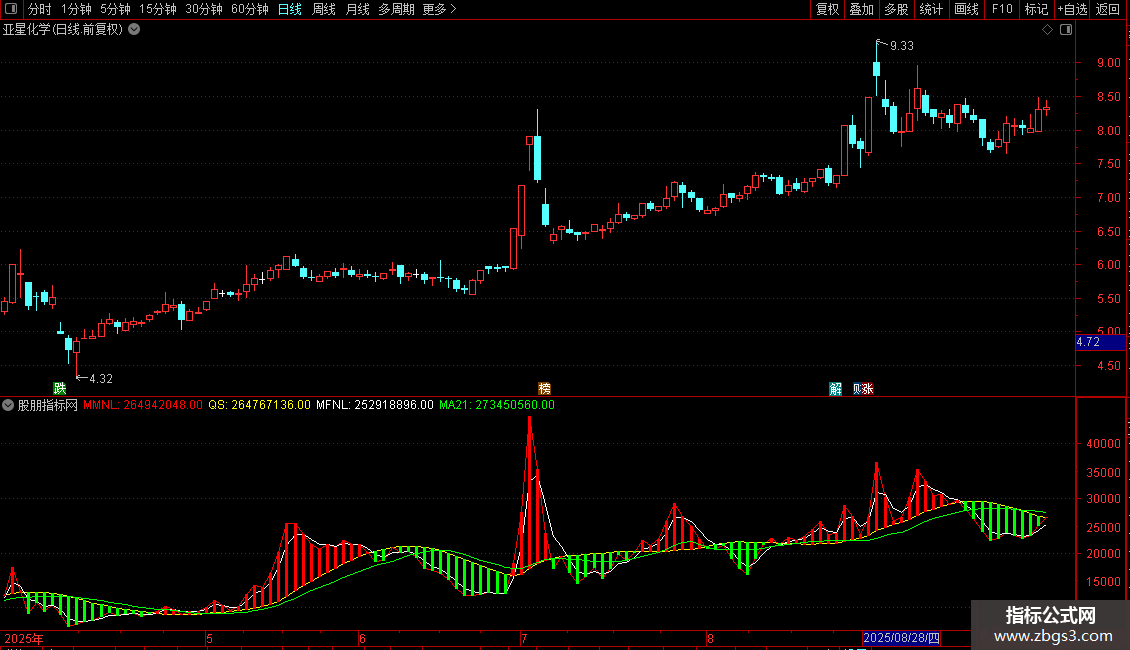 MM:=EMA(SLOPE(VAR5,21)*20+VAR5,55)*VAR3;
