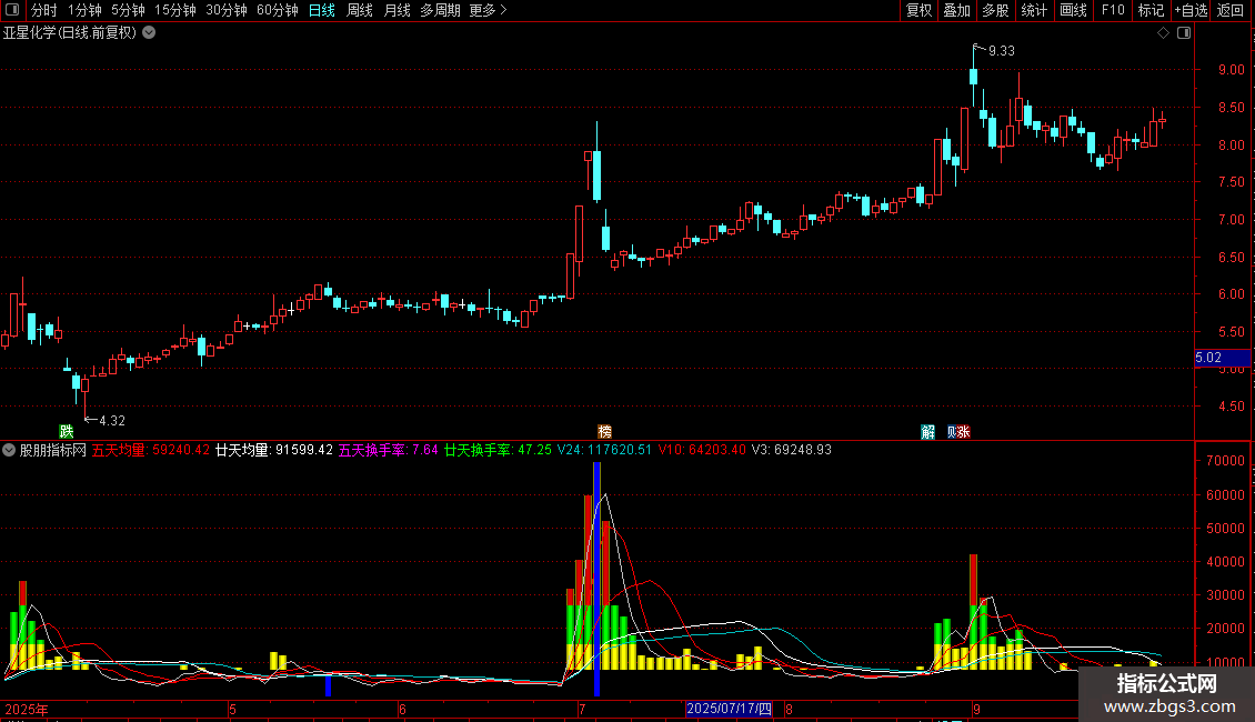 五天均量:MA(VOL,5),COLORRED,LINETHICK1;