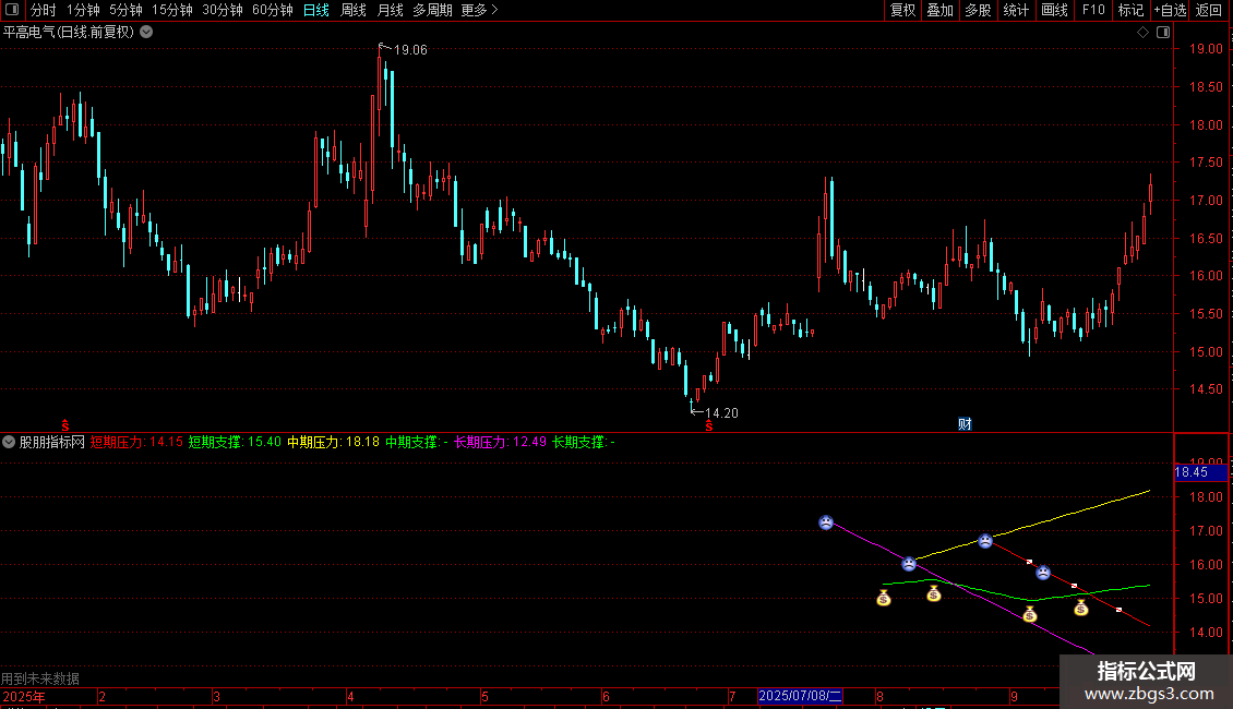 中期压力:DRAWLINE(S3,H,S2,H,1),COLORYELLOW;