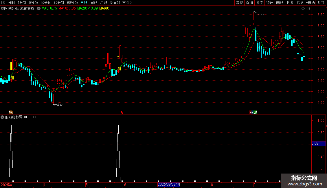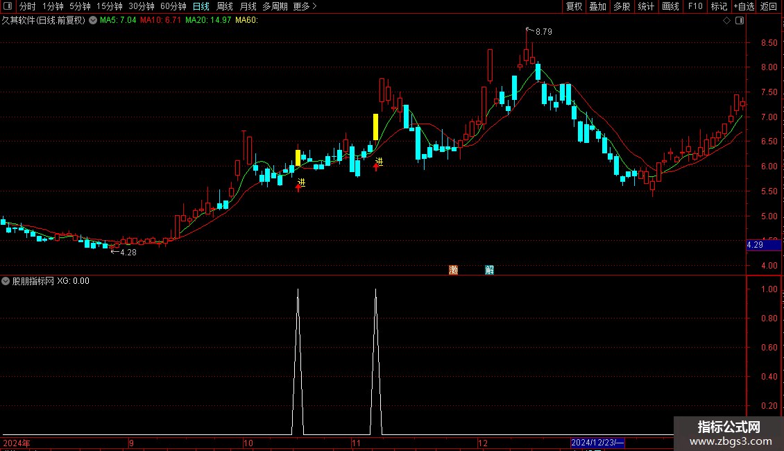 买入信号K线:以黄色柱状图形式示出,是明确的买入信号。当该信号出现时,建议投资者在此时进行买入操作,以期在股价上涨前布局,获取投资收益。