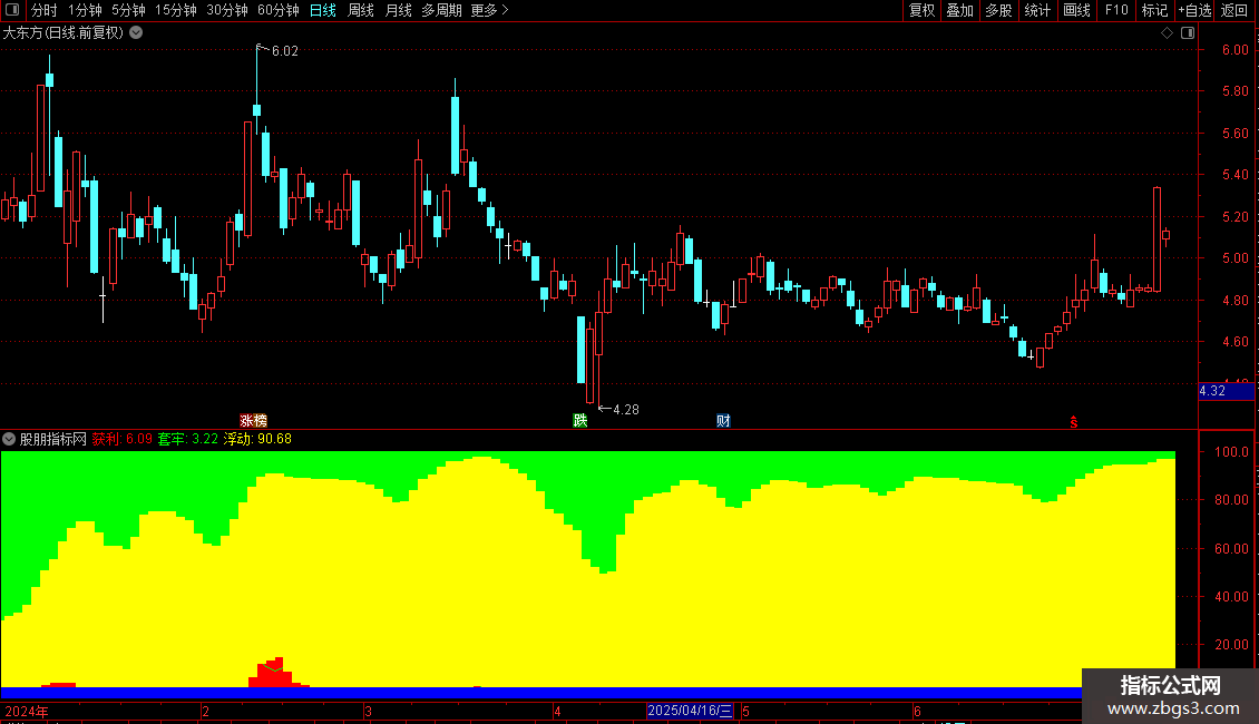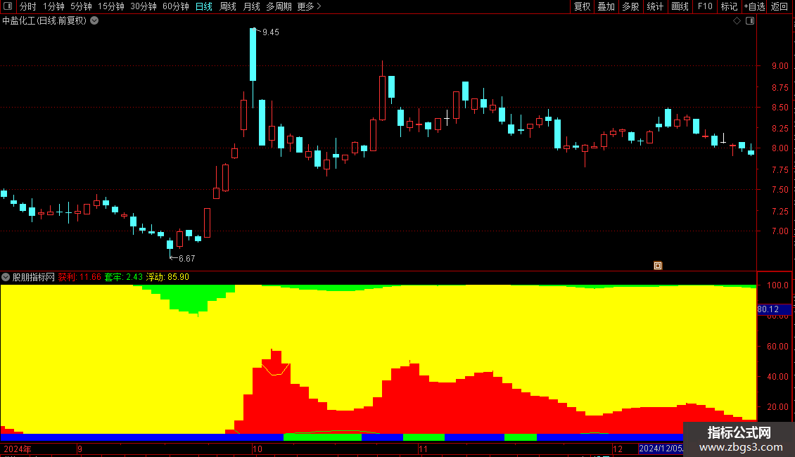 套牢: ( 100.000 - MA(A02,变量00)),COLORGREEN;