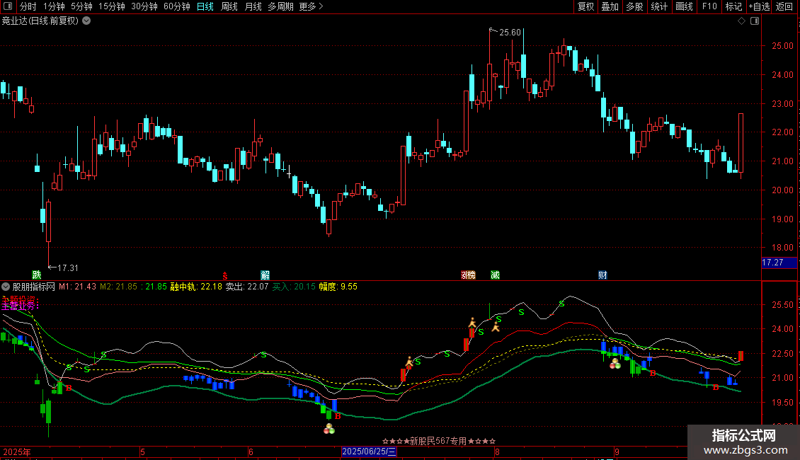 DRAWTEXT(CROSS(LOW,买入),LOW*0.98,'B'),COLORRED,LINETHICK2;