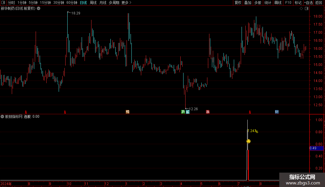 DRAWICON(REF(选股,1) AND 成绩>=1,0.68,5);