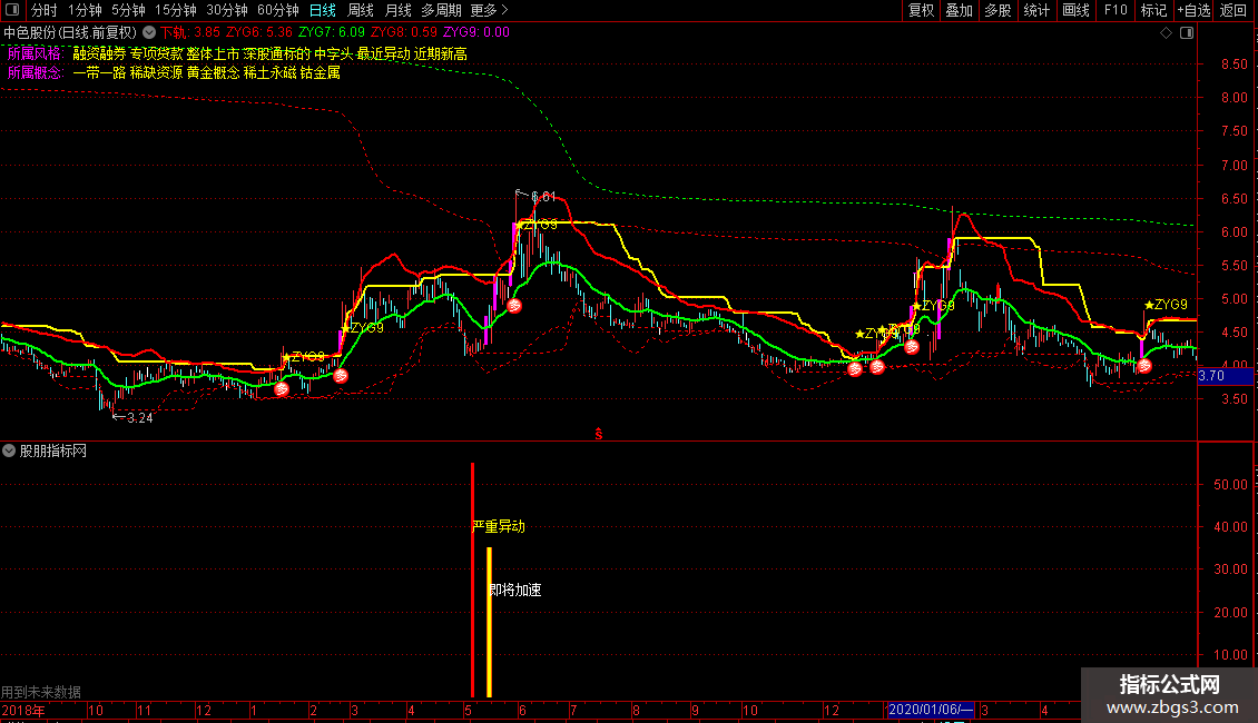 输出上轨:1日前的ZYG3,画红色,线宽为2