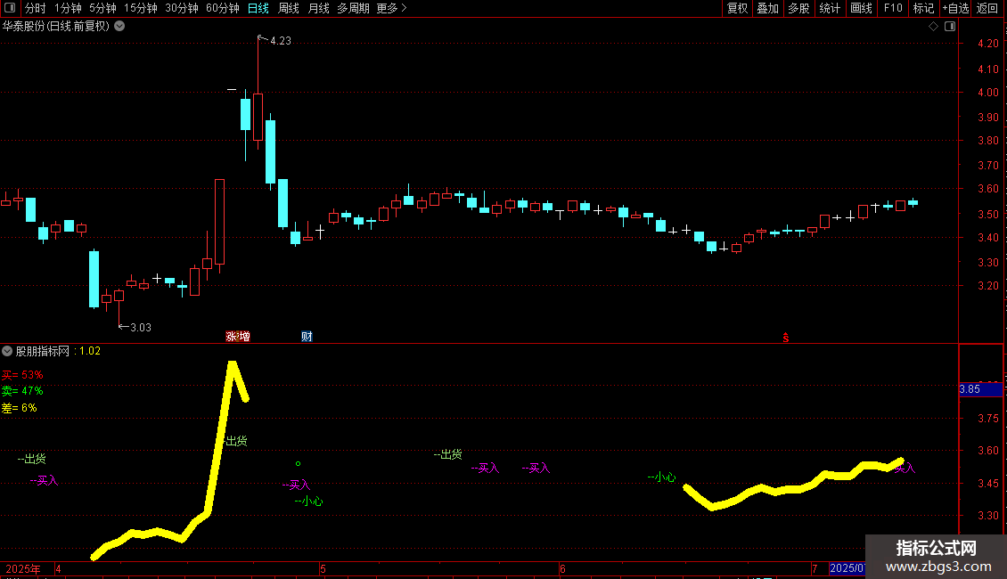 均价:=SUM(C*V,240)/SUM(V,240),COLORYELLOW,LINETHICK1;
