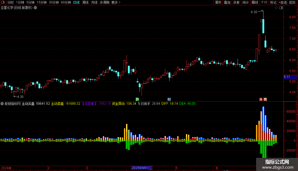 通达信众赢资金监测副图指标 源码 贴图