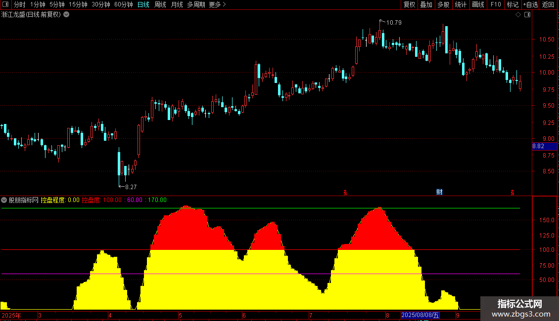 STICKLINE( 控盘程度,0,控盘程度 ,3,0 ),COLOR00FFFF;