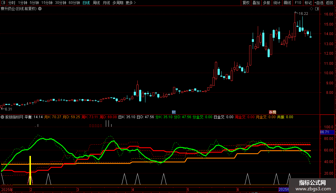 一张图把KDJ日金叉、周金叉、月金叉以及共振时的图像都展示出来了,直观明了,至于怎么使用,大家仔细揣摩,相信必有所得