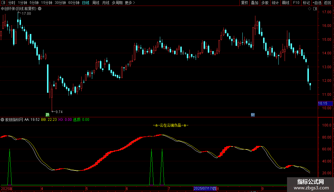 DRAWTEXT(CROSS(AA,22) AND BB<AA,AA-2,'*底部介入');