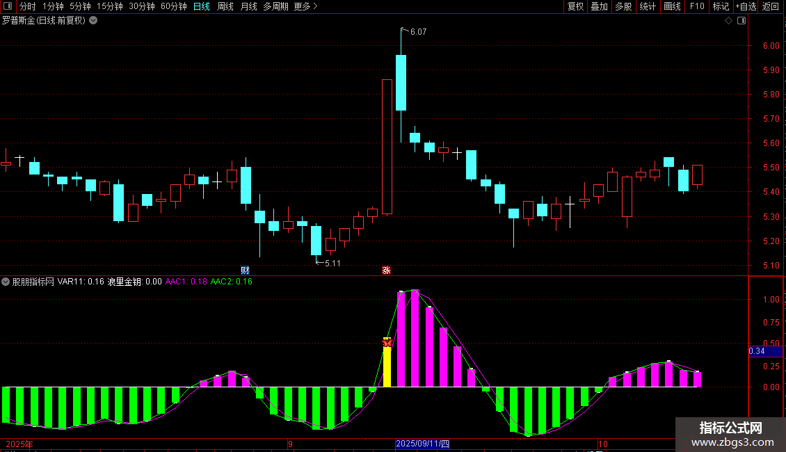 STICKLINE(VAR11>=0,VAR11,0,2,0),COLORMAGENTA;