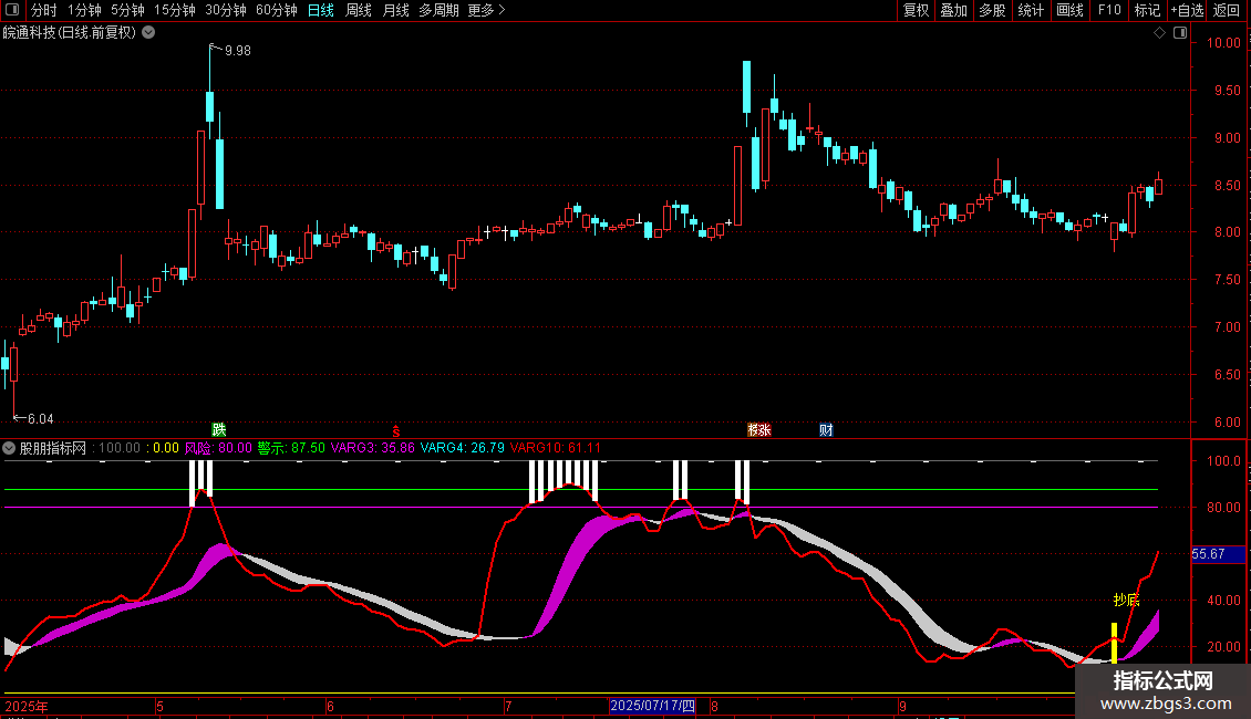 DRAWTEXT(FILTER(VARG5,10)=1,40,'抄底'),COLORYELLOW;