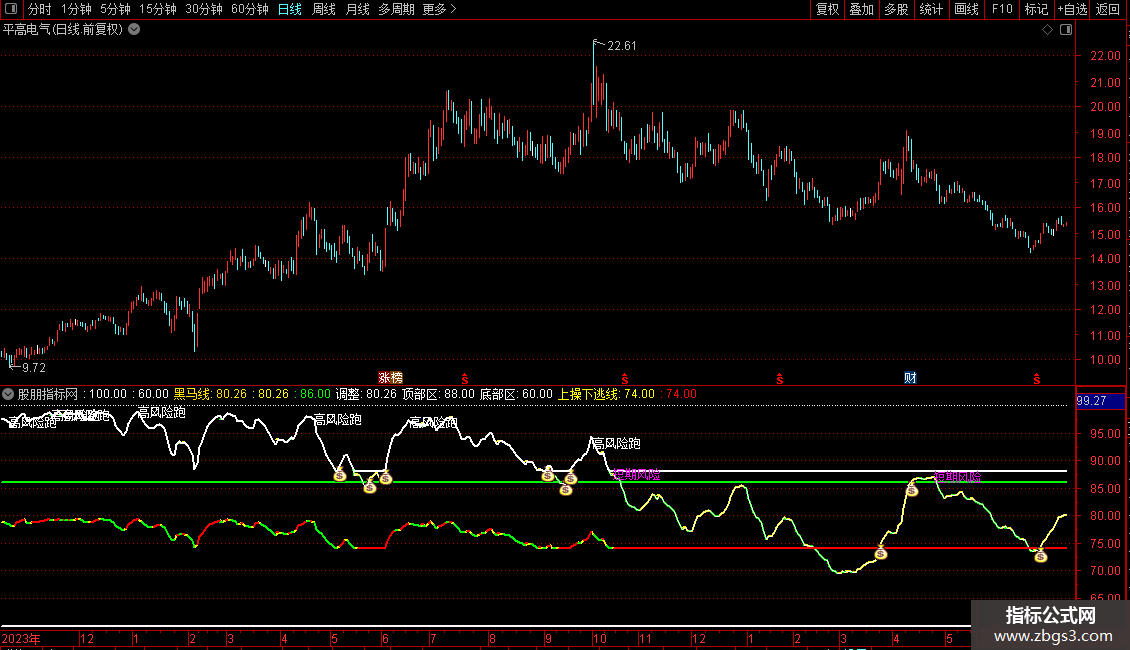 DRAWTEXT(VAR7>88 AND CROSS(84,VARC),调整,'高风险跑');