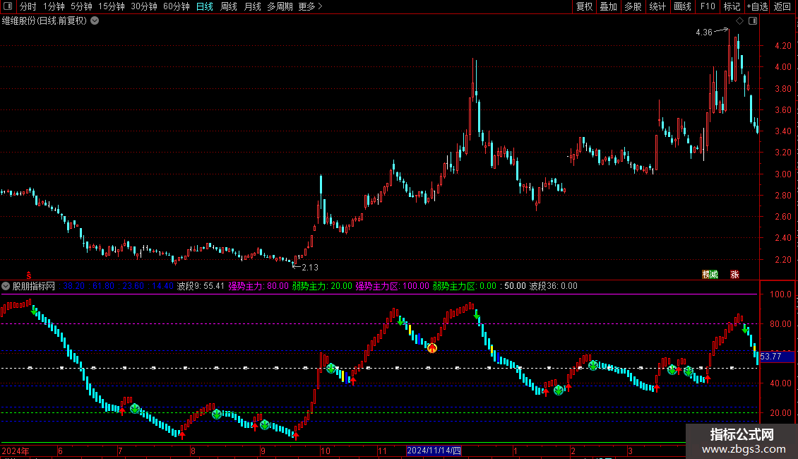 很好:=IF(波段19&&波段3,80,100),COLORGREEN,LINETHICK2;