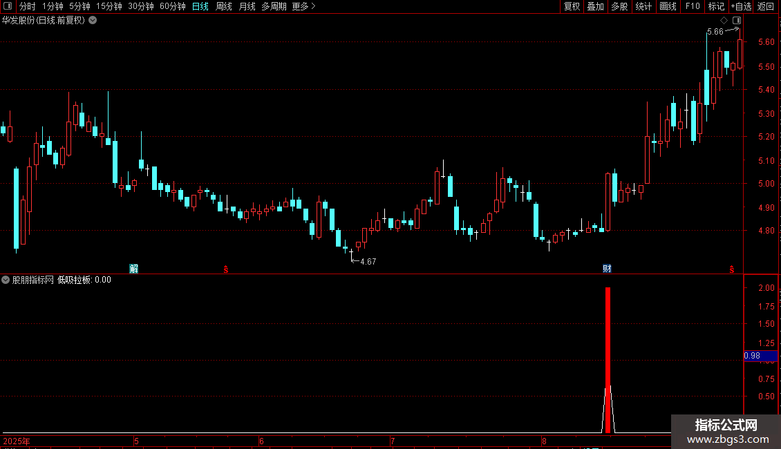 1.低吸拉板指标将低吸与拉板信号融合是量能与走势共同选择,涨幅达到5%的时候会出信号,所以盘中预警使用更合适。