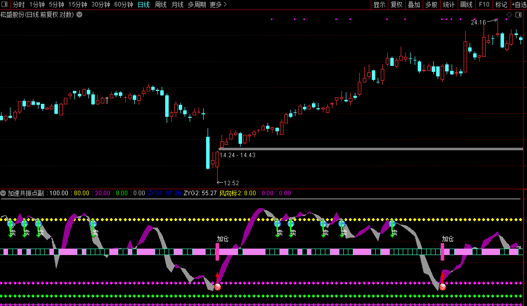 通达信【加速共振点】副图/选股识别股价的短期买卖时机和趋势强度共振点源码