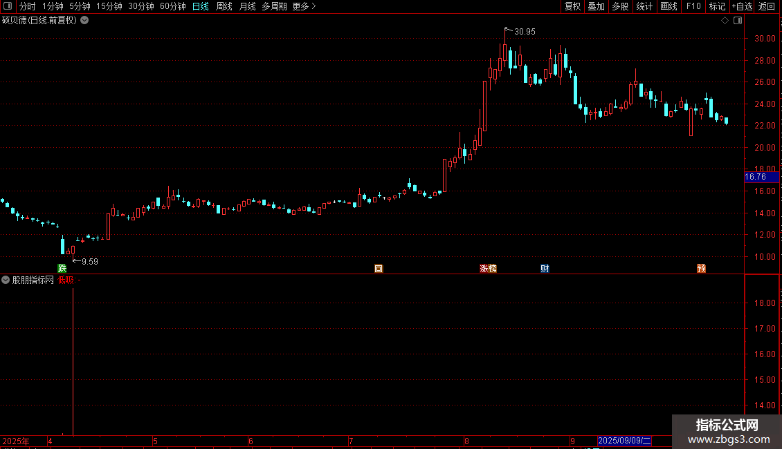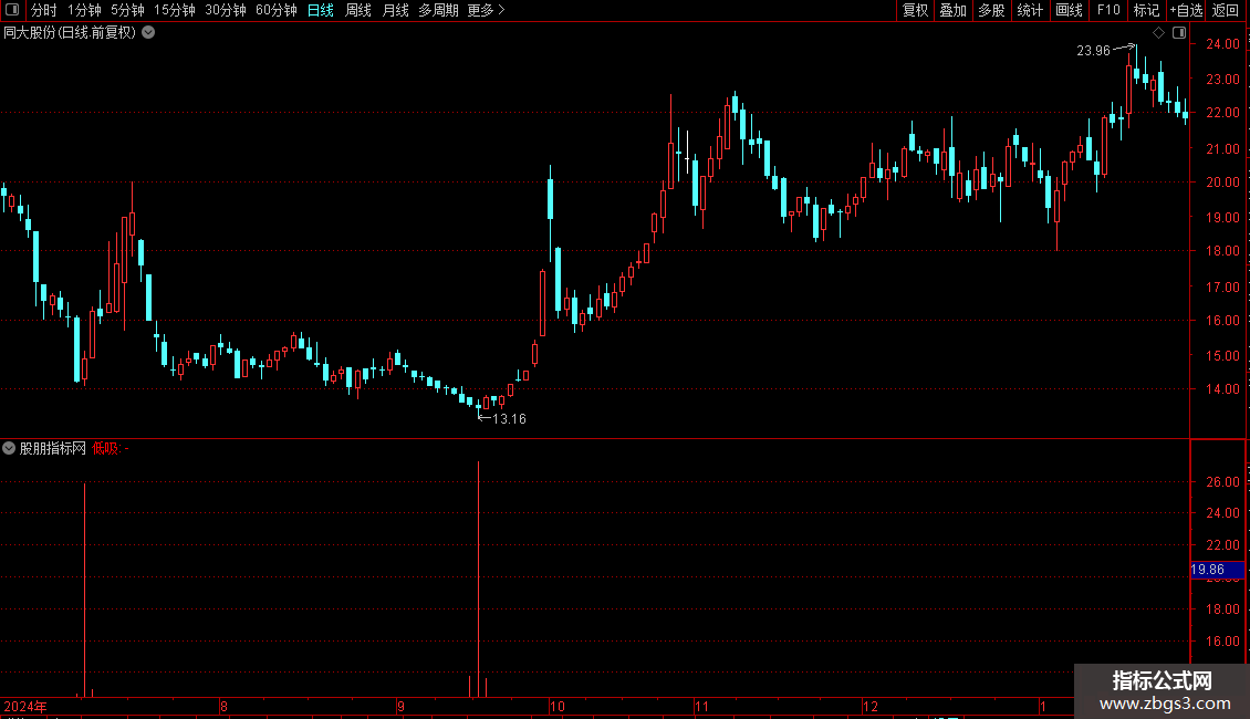 低吸:IF(TJ > 10, EMA(IF(LOW <= VARE , (VARD + VARF * 2) / 2, 0), 3) / 618 * VAR10 * 0.5, DRAWNULL), COLORSTICK, COLORRED;