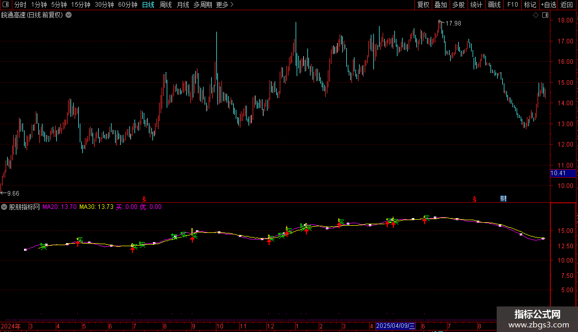 优:买 AND MA5>REF(MA5,1),COLORYELLOW,POINTDOT,LINETHICK0;