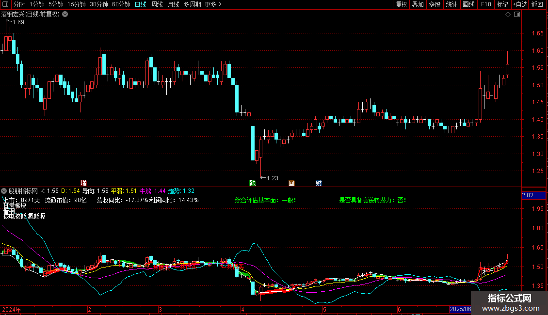 DRAWTEXT_FIX(一般,0.45,0,0,'综合评估基本面:一般!'),COLORGREEN;