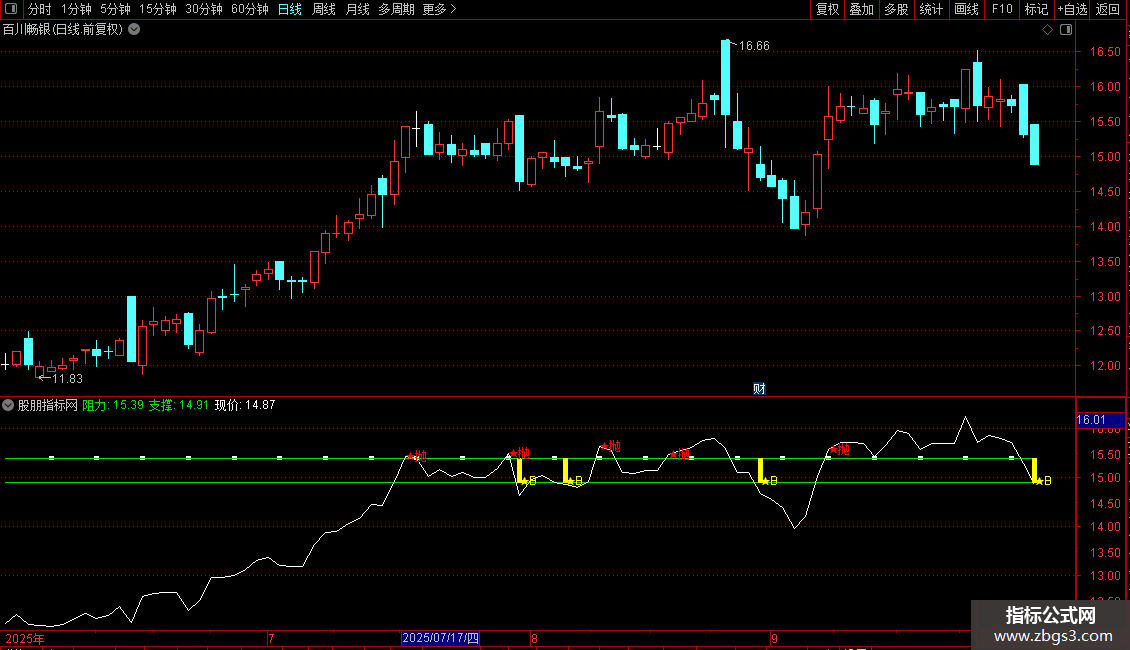 STICKLINE(CROSS(支撑,现价),支撑,阻力,1,0),COLORYELLOW;