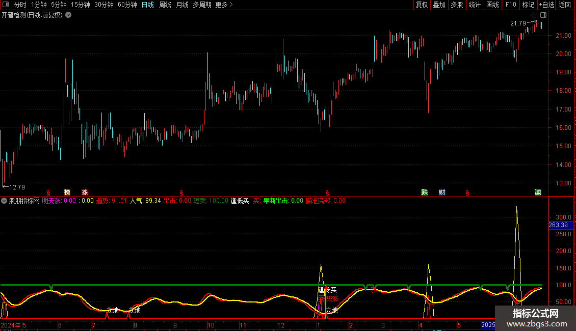短卖:IF(CROSS(人气,趋势) AND (人气>75),85,100),COLOR008000,LINETHICK3;