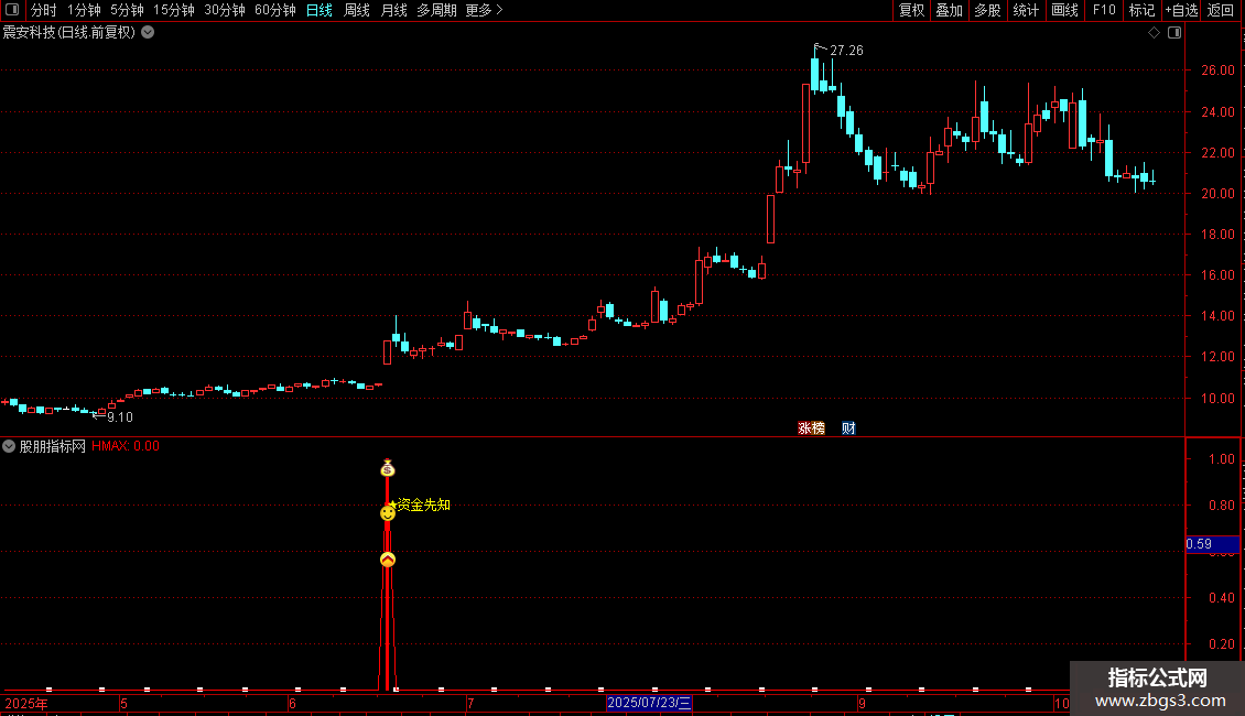 DRAWTEXT(HMAX,0.8, '★资金先知'),COLORYELLOW LINETHICK6;
