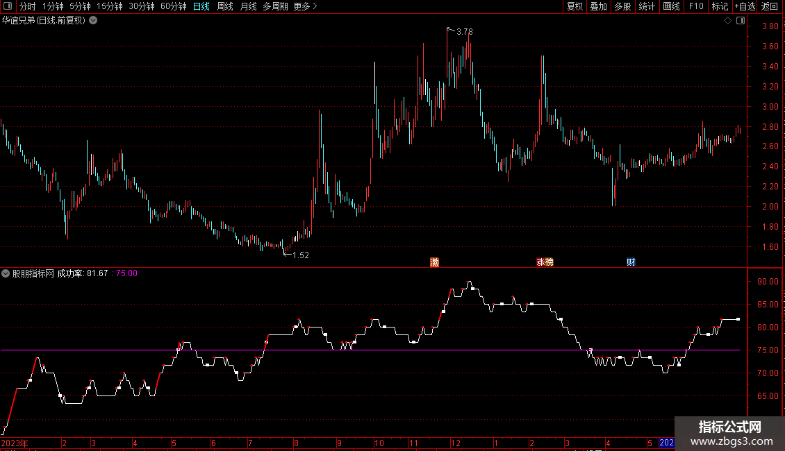 如果成功率>1日前的成功率,返回成功率,否则返回无效数,画红色,线宽为2