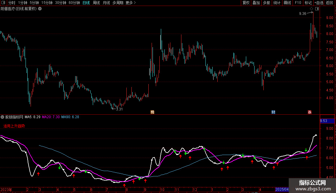 DRAWTEXT_FIX(1,0.01,0.05,0,'适用上升趋势'),COLORRED;