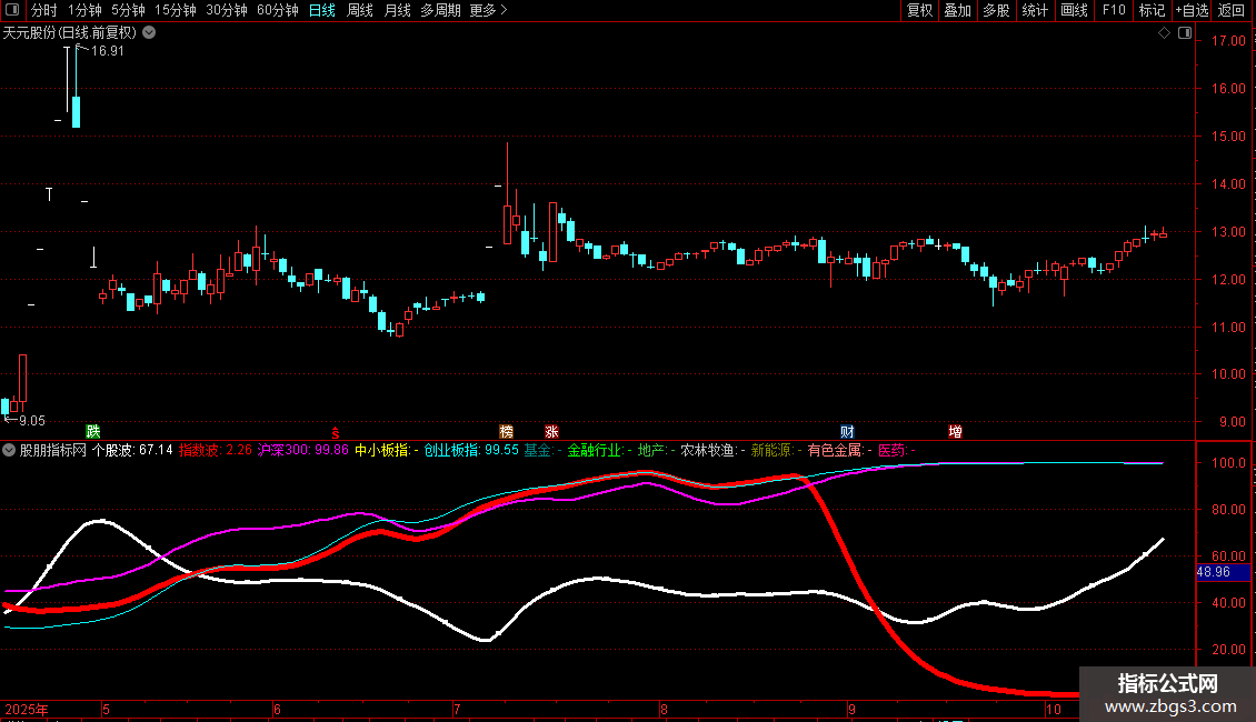 操作策略是:当个股波线从下方穿越指数波或行业线时买入,从上方跌破时卖出。可以关注个股与沪深300、创业板等指数的相对强弱变化,以及在金融、医药等热门行业中的表现差异。