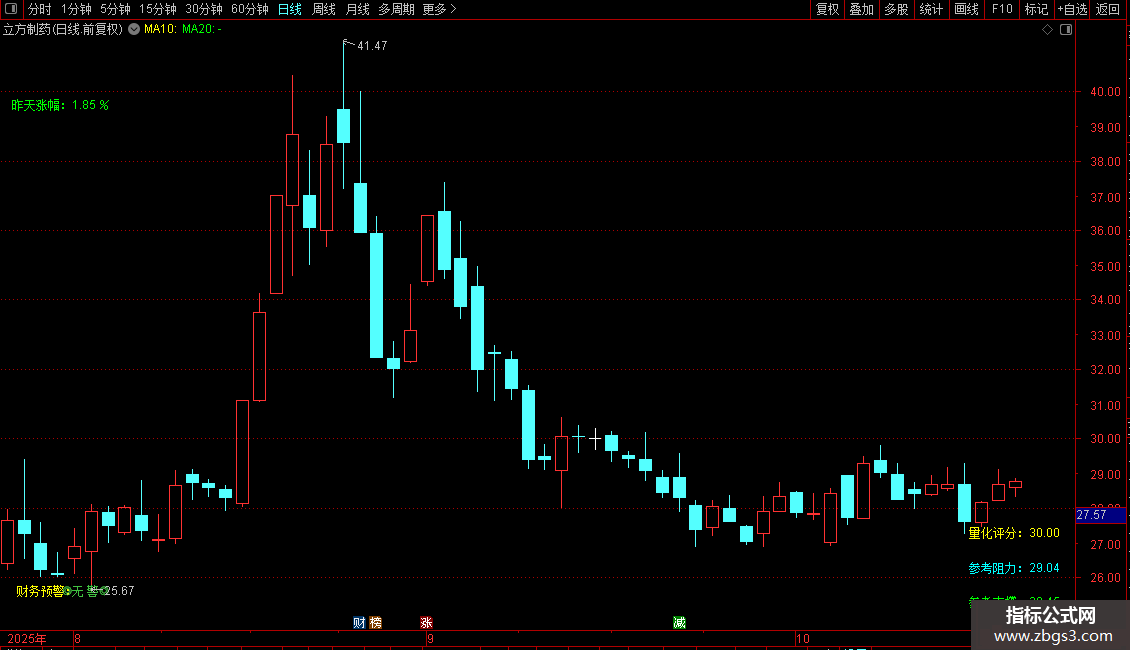 E:=(HIGH+LOW+OPEN+2*CLOSE)/5;阻力:=2*E-LOW;支撑:=2*E-HIGH;